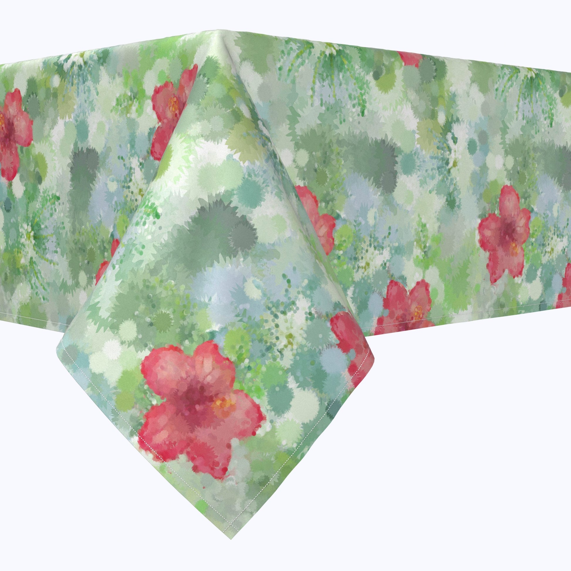Square Tablecloth. Made in the USA, 100% Milliken Spun Polyester. Hemmed Edges. Seamless cloth. Product is printed. Machine Washable: Warm water wash, cold rinse, tumble dry low. Light Iron touch up as needed. Will soften after each wash to a cotton feel. Engineered to resist stain absorption and linting. Perfect for any and all occasions at home, hotels & restaurants alike!