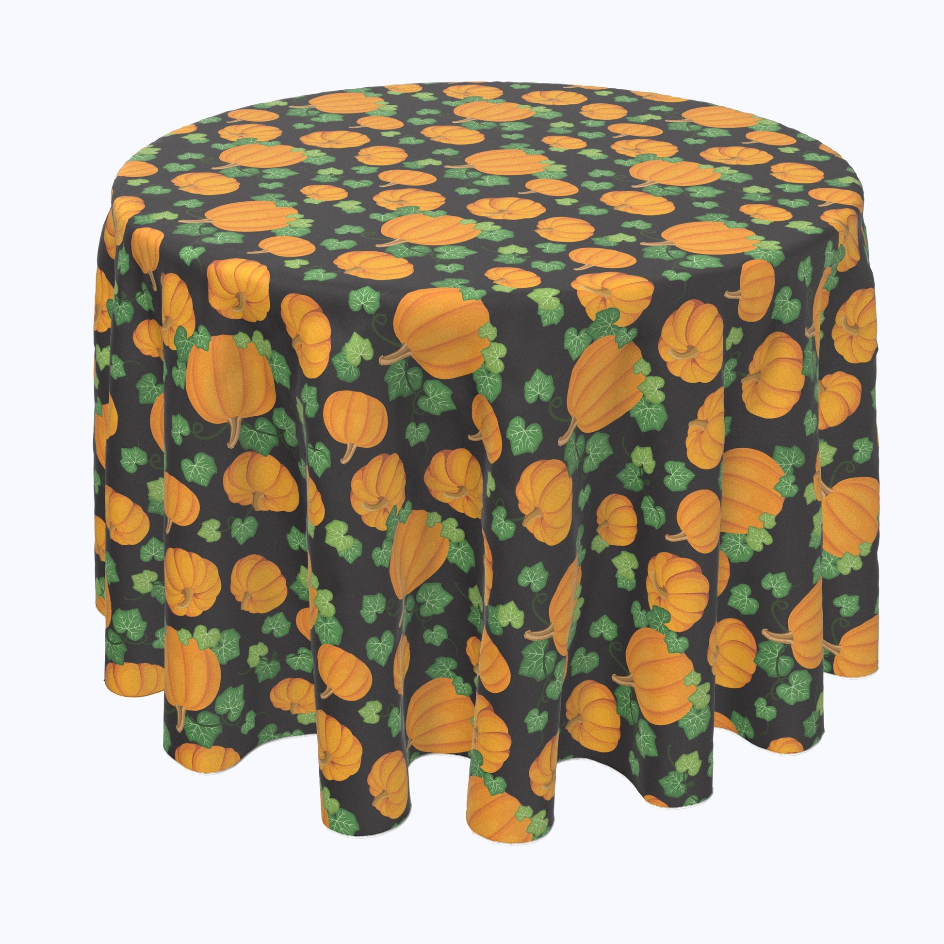 Pumpkin Patch Scroll Black Round Tablecloths