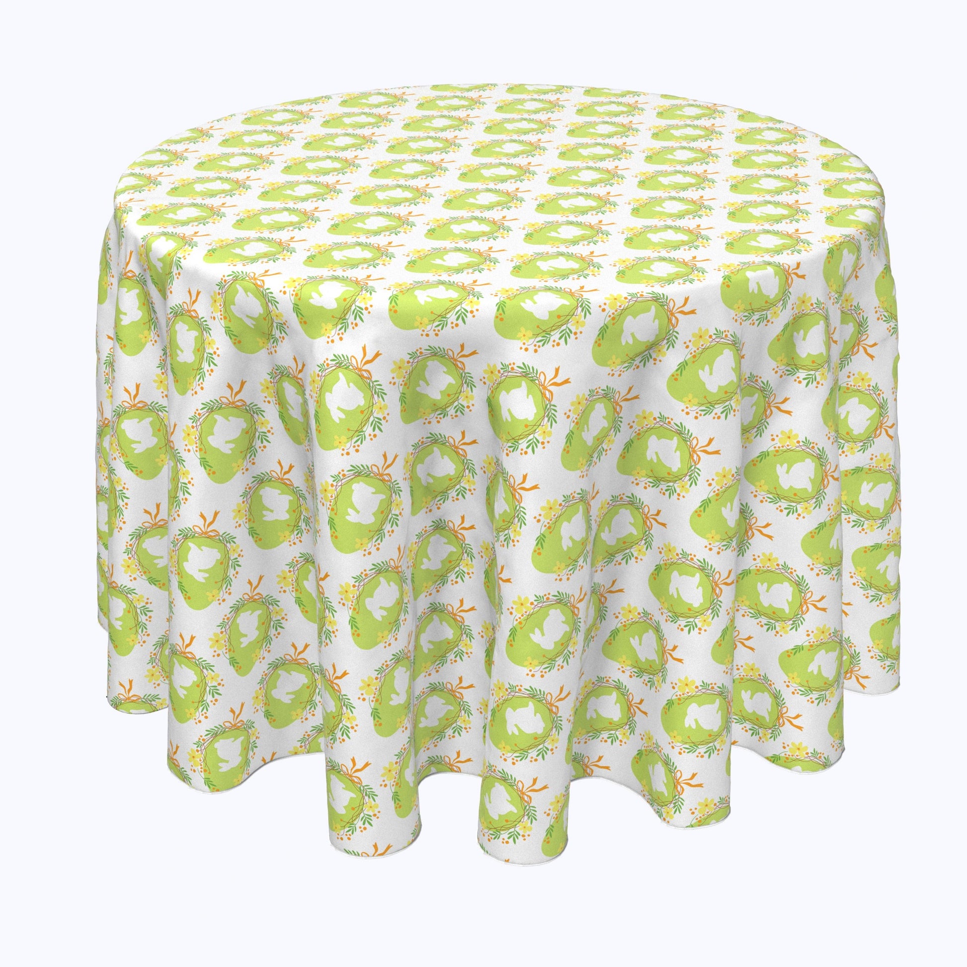 Tabelcloth (size is of tablecloth not table). Made in the USA, 100% Milliken Spun Polyester. Merrowed Edges. Seamless cloth. Product is printed. Machine Washable: Warm water wash, cold rinse, tumble dry low. Light Iron touch up as needed. Will soften after each wash to a cotton feel. Engineered to resist stain absorption and linting. Perfect for any and all occasions at home, hotels & restaurants alike!